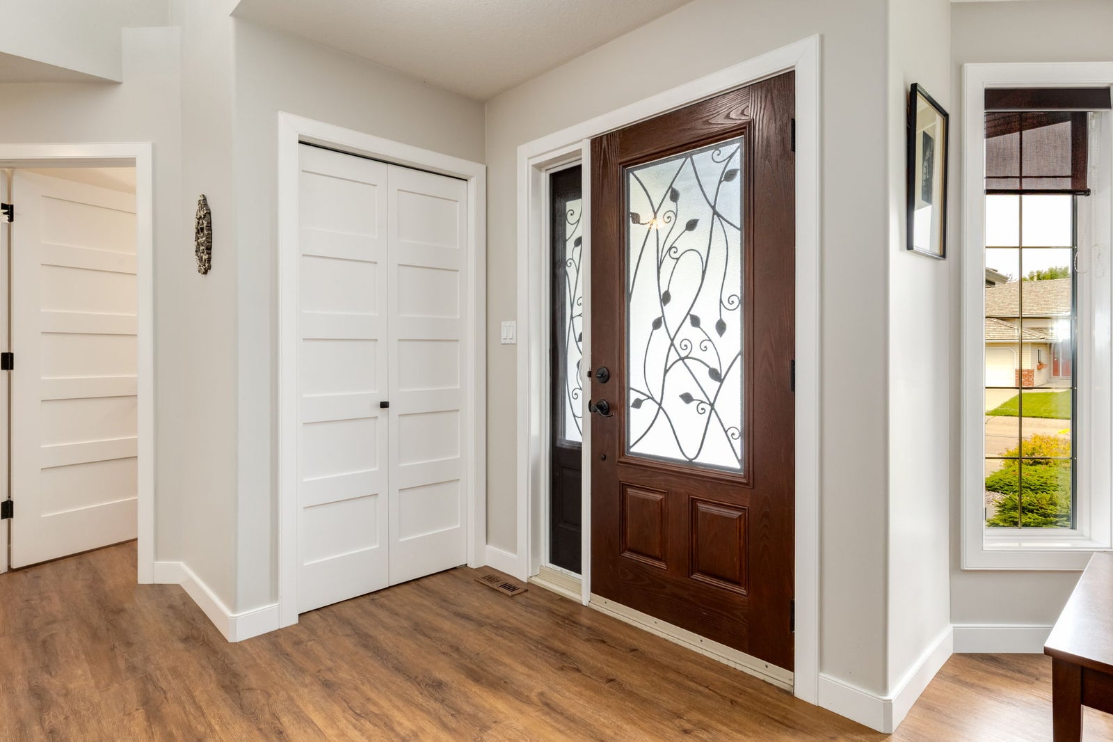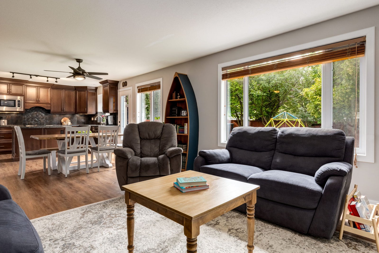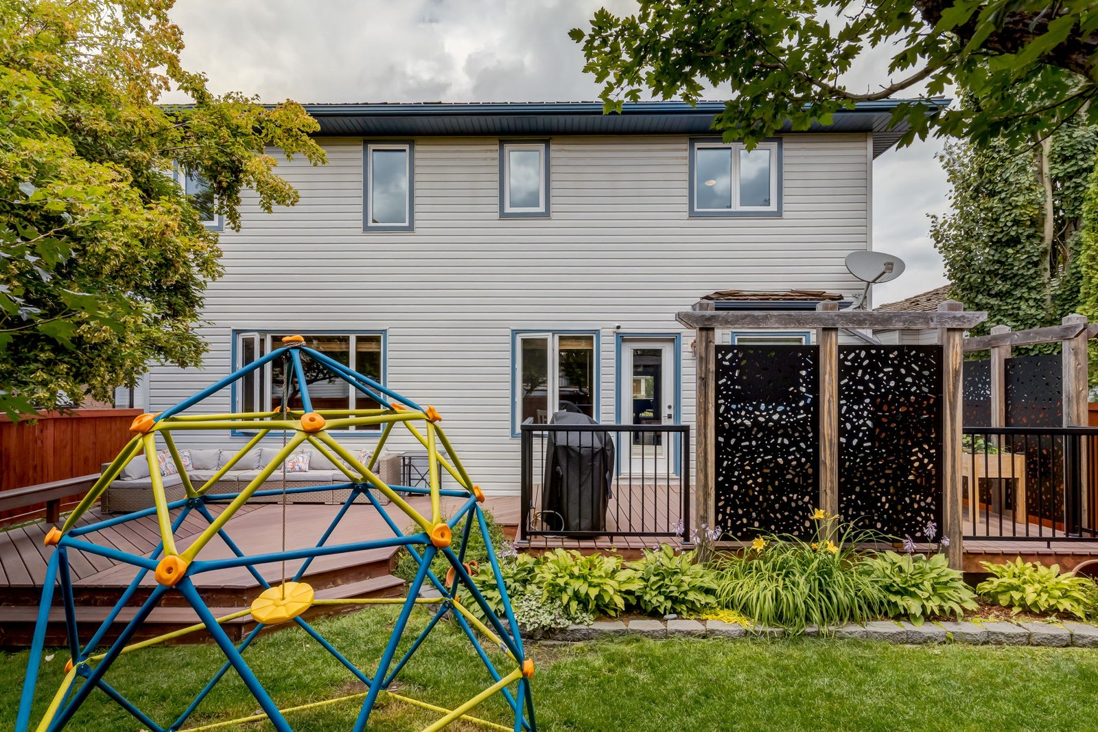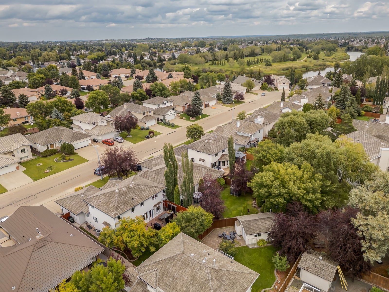 Welcome to Nottingham — one of Sherwood Park’s most sought-after communities! Just steps from Ball Lake Island Park, this move-in-ready home offers trails, playgrounds, greenspace, and water access for paddleboarding or kayaking. Inside, you’ll love the open-concept kitchen with granite counters, s/s appliances, and a cozy gas fireplace in the living room. Need space? Enjoy multiple living areas, main floor laundry, and a private office with custom California Closets. Upstairs, the king-sized primary suite features a spa-like ensuite with steam shower, jet tub, and walk-in closet. Enjoy peace of mind with brand new triple-paned windows for year-round comfort. The fully finished basement includes a home theatre with projector, screen, and surround sound — all included! Step out to a sunny, south-facing composite deck surrounded by mature trees. Life just feels better in Sherwood Park — come see for yourself!