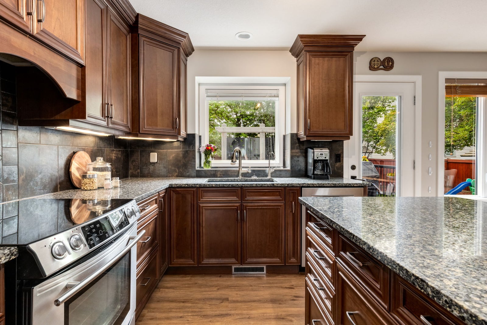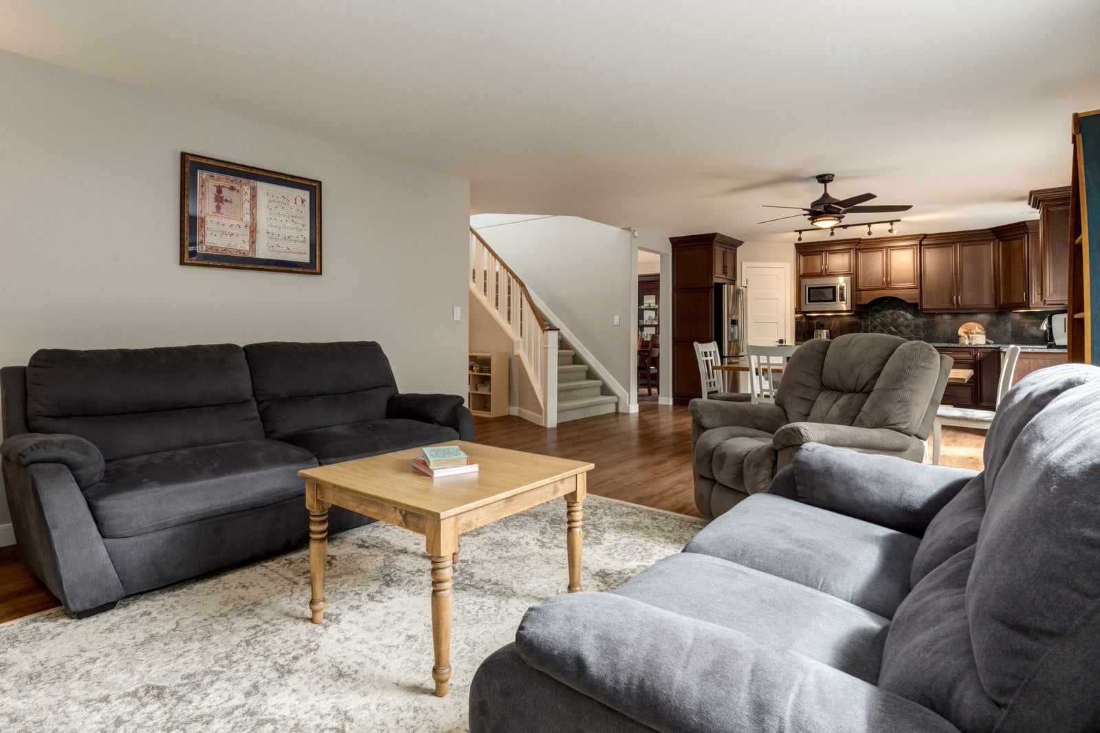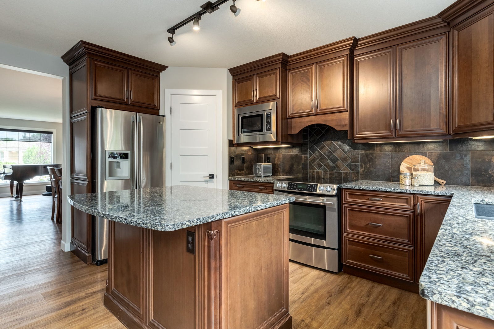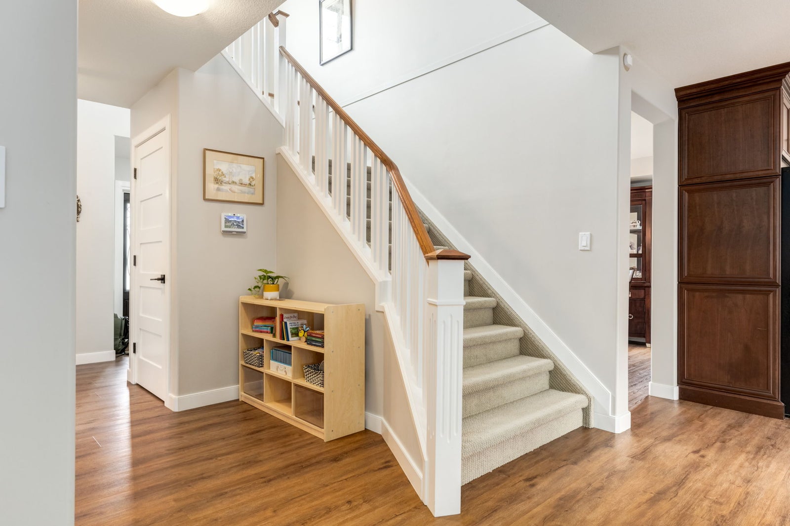 Welcome to Nottingham — one of Sherwood Park’s most sought-after communities! Just steps from Ball Lake Island Park, this move-in-ready home offers trails, playgrounds, greenspace, and water access for paddleboarding or kayaking. Inside, you’ll love the open-concept kitchen with granite counters, s/s appliances, and a cozy gas fireplace in the living room. Need space? Enjoy multiple living areas, main floor laundry, and a private office with custom California Closets. Upstairs, the king-sized primary suite features a spa-like ensuite with steam shower, jet tub, and walk-in closet. Enjoy peace of mind with brand new triple-paned windows for year-round comfort. The fully finished basement includes a home theatre with projector, screen, and surround sound — all included! Step out to a sunny, south-facing composite deck surrounded by mature trees. Life just feels better in Sherwood Park — come see for yourself!
