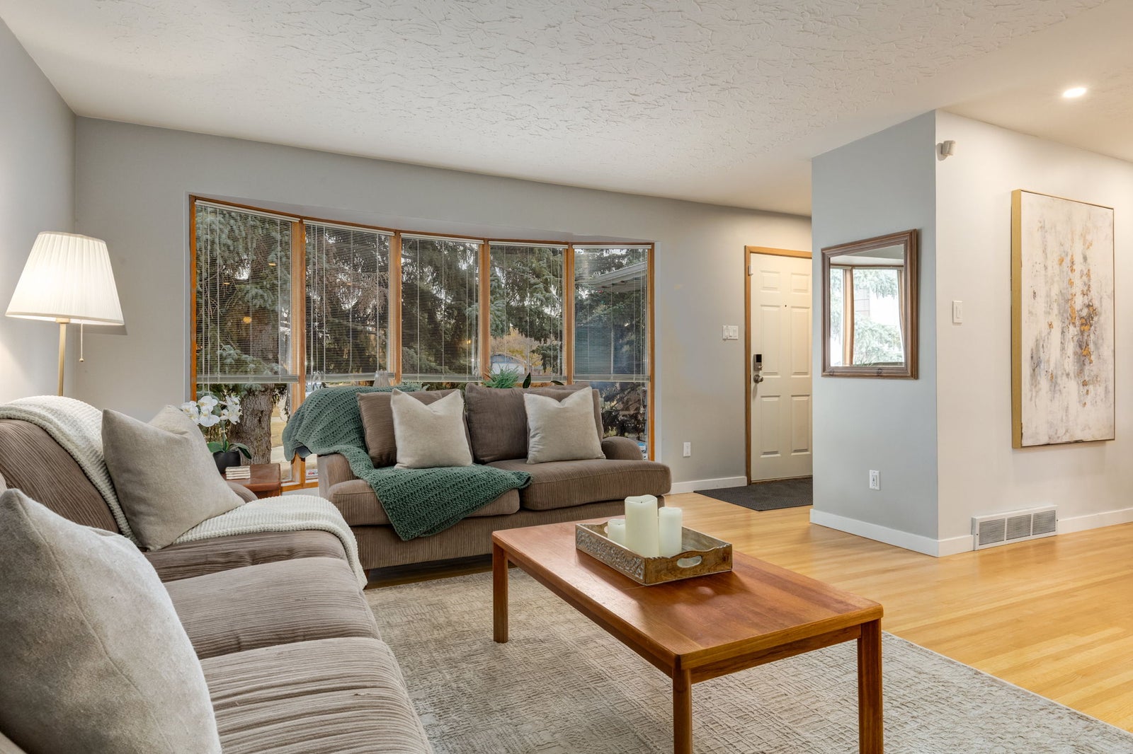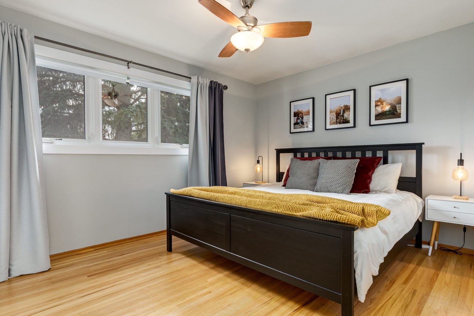 Welcome to this well maintained and tastefully upgraded bungalow located in the heart of Meadowlark Park directly across from a serene green space. Featuring 5 bedrooms, 2 bathrooms, and an oversized single detached garage PLUS extra parking, this home is perfect for families, down-sizers or savvy investors. Enjoy peace of mind with the extensive list of upgrades including brand NEW basement carpet, baseboards, A/C, fully updated kitchen, refinished hardwood floors, 100amp electrical panel, epoxy-finished flooring in the mechanical room, a modern lower-level bathroom, Furnace (4 years old) and more! Located minutes from top-rated schools, Meadowlark Shopping Centre, the Misericordia Hospital, the new LRT line, and the soon-to-open IQ Tennis & Pickleball Centre. Nestled among mature trees in a walkable, family-friendly neighbourhood this move-in-ready home checks all the boxes!