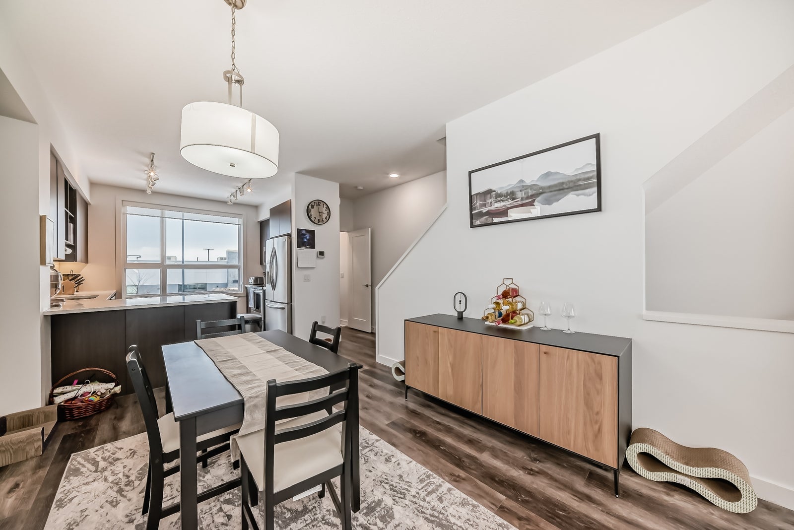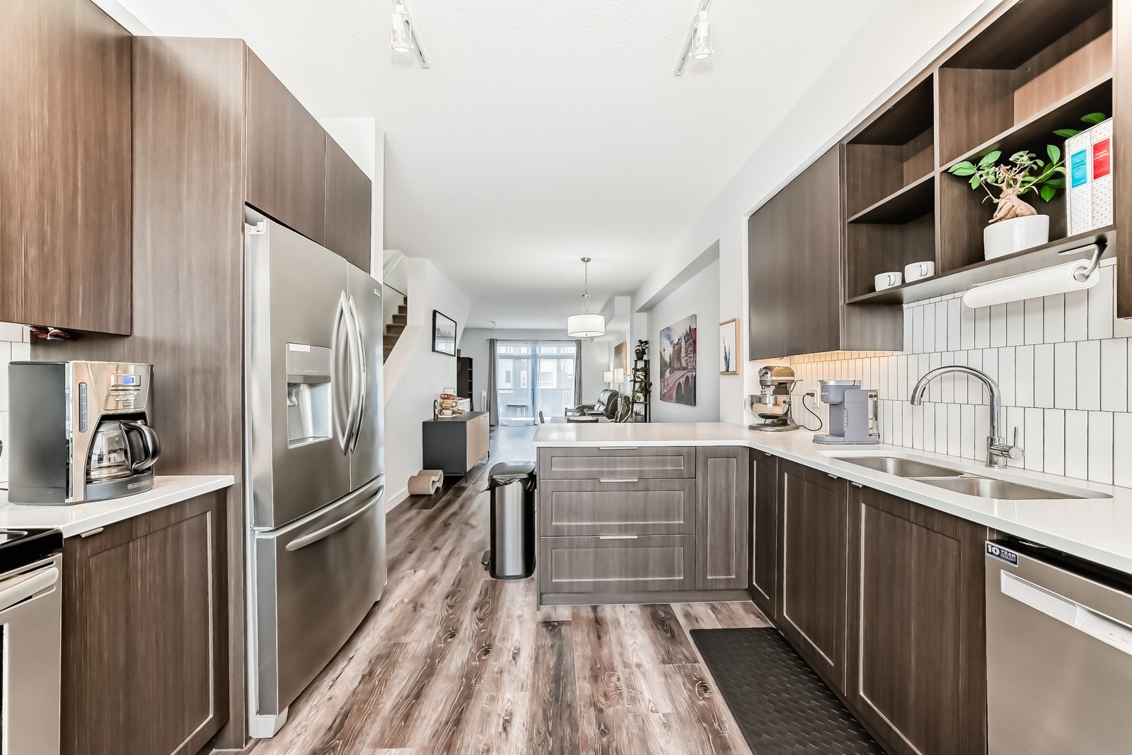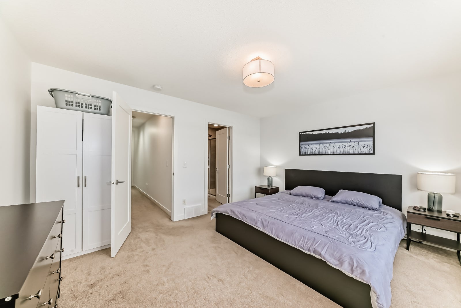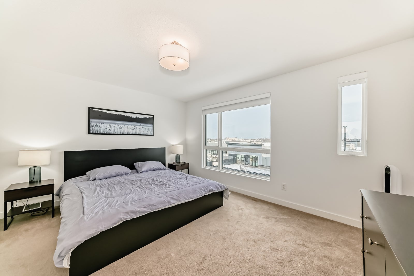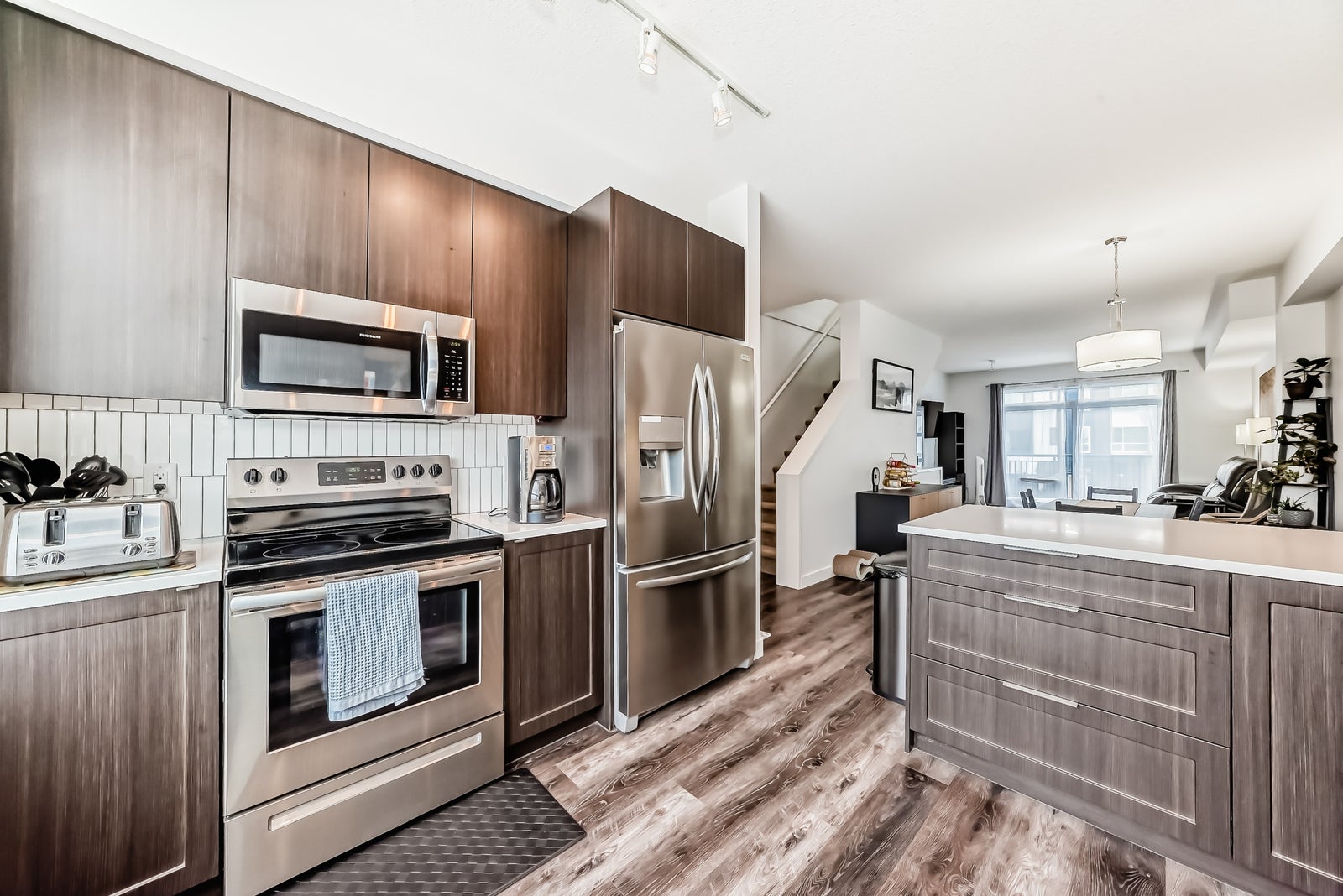 Discover refined living in this upscale townhome, perfectly situated in the gorgeous Jensen Lakes community. This open-concept home offers 3 bedrooms, 3.5 bathrooms, and air conditioning, with oversized windows that fill the space with natural light—ideal for both everyday living and entertaining. The modern kitchen showcases rich, dark cabinetry, white quartz countertops, and stainless steel appliances, flowing seamlessly into a spacious dining area and inviting living room with sliding doors leading to your private deck. Upstairs, you’ll find two luxurious primary suites, each with its own private ensuite, along with the convenience of upper-level laundry. The ground level features a third bedroom or den, a 3-piece bathroom, and access to the attached single garage. Additional highlights include maintenance-free living, giving you more time to enjoy everything Jensen Lakes has to offer from beach access to dining at your favourite local spots. Experience St. Albert’s only lake community at its finest!