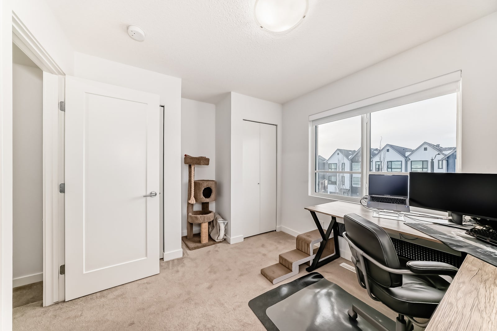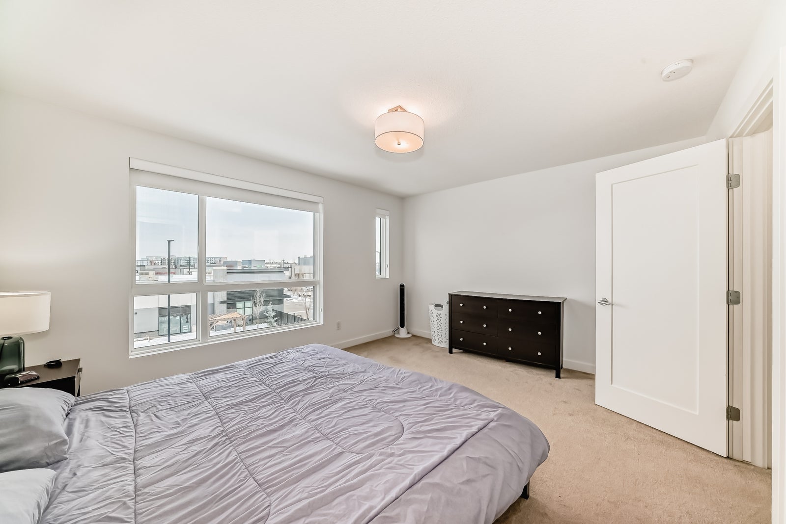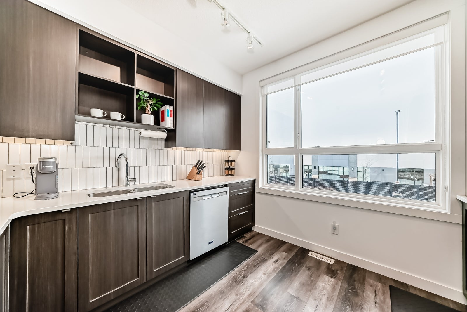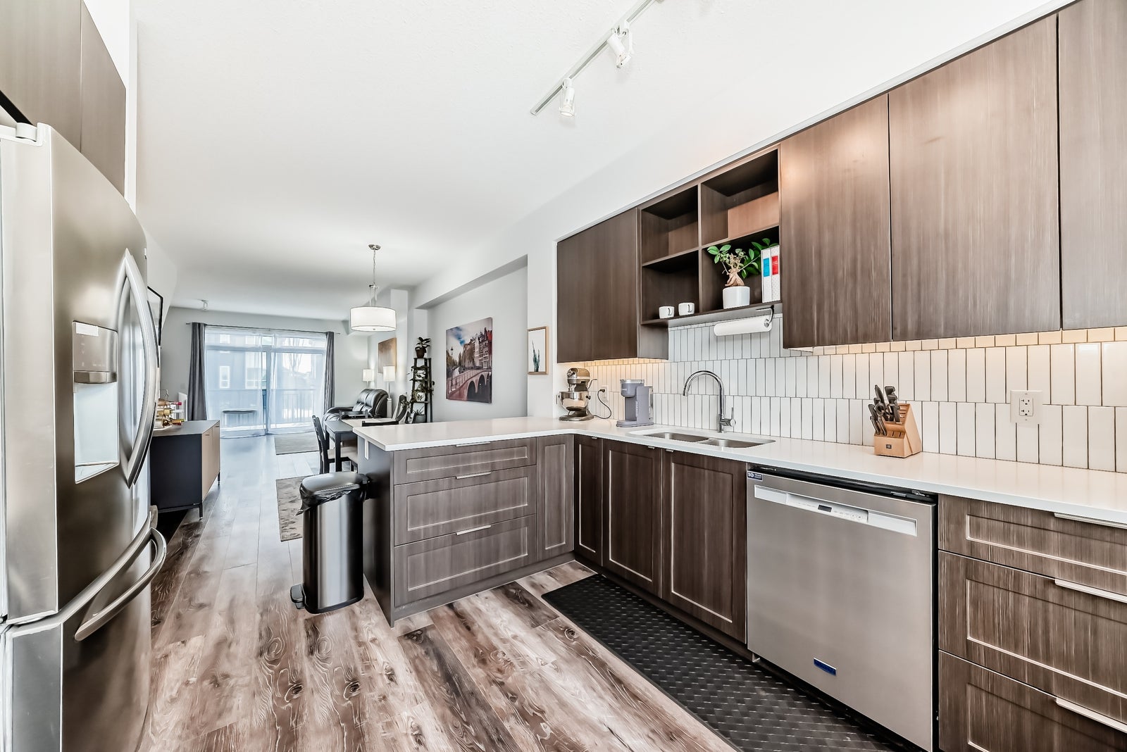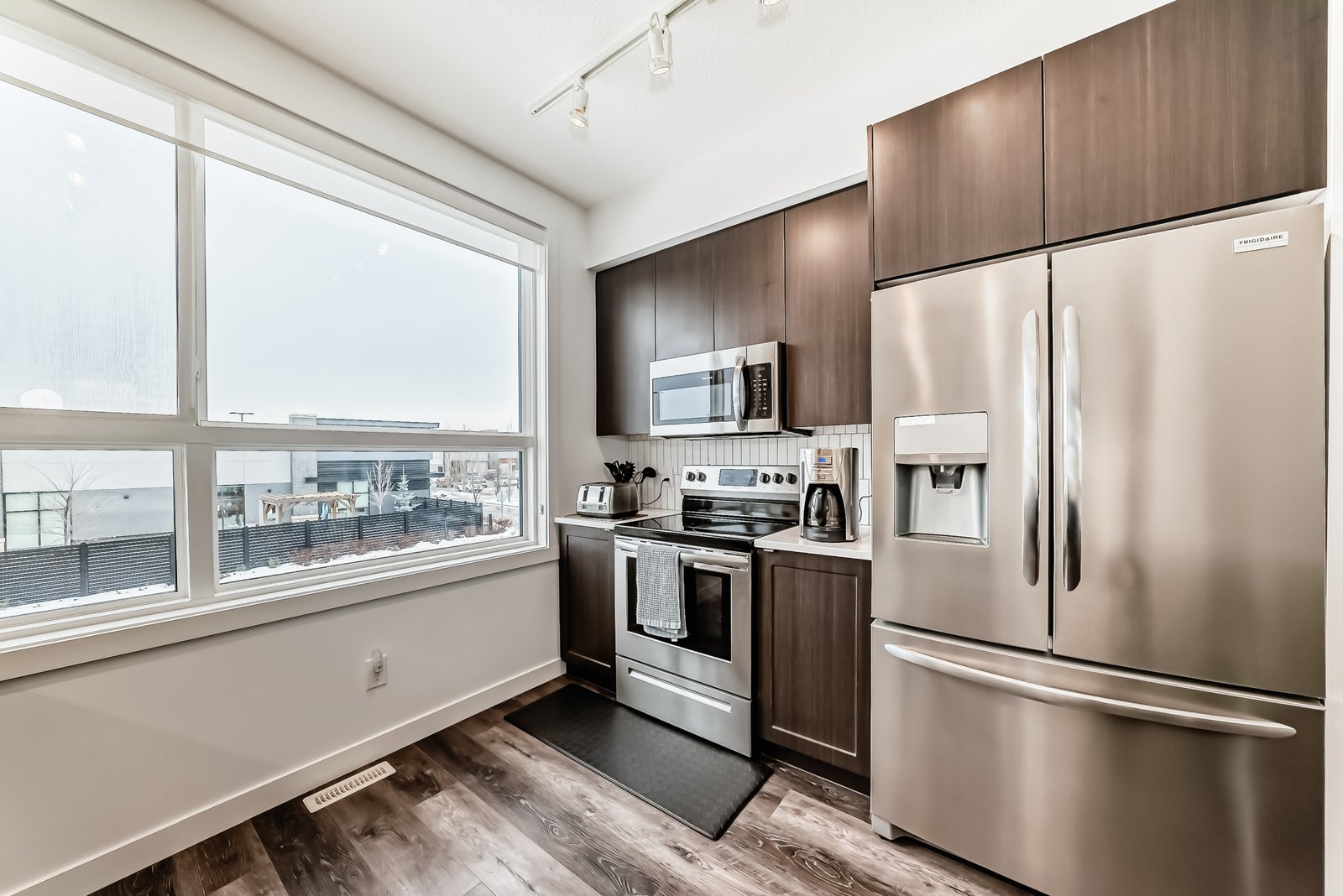 Discover refined living in this upscale townhome, perfectly situated in the gorgeous Jensen Lakes community. This open-concept home offers 3 bedrooms, 3.5 bathrooms, and air conditioning, with oversized windows that fill the space with natural light—ideal for both everyday living and entertaining. The modern kitchen showcases rich, dark cabinetry, white quartz countertops, and stainless steel appliances, flowing seamlessly into a spacious dining area and inviting living room with sliding doors leading to your private deck. Upstairs, you’ll find two luxurious primary suites, each with its own private ensuite, along with the convenience of upper-level laundry. The ground level features a third bedroom or den, a 3-piece bathroom, and access to the attached single garage. Additional highlights include maintenance-free living, giving you more time to enjoy everything Jensen Lakes has to offer from beach access to dining at your favourite local spots. Experience St. Albert’s only lake community at its finest!